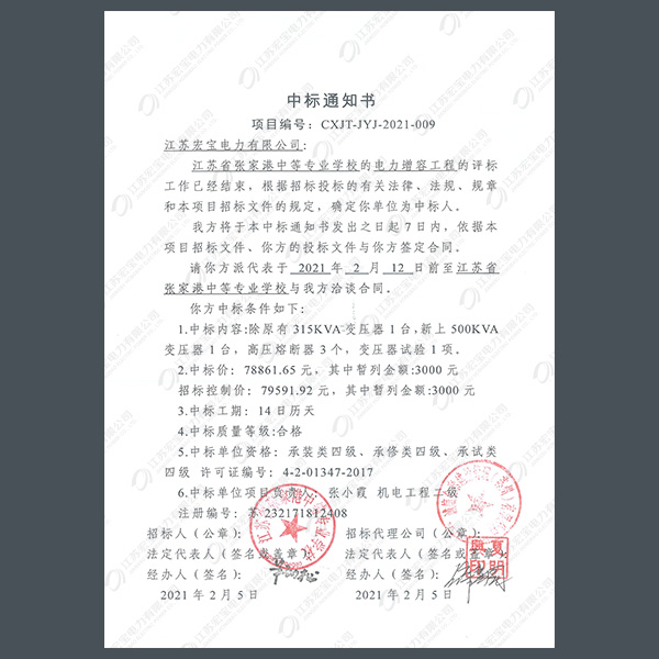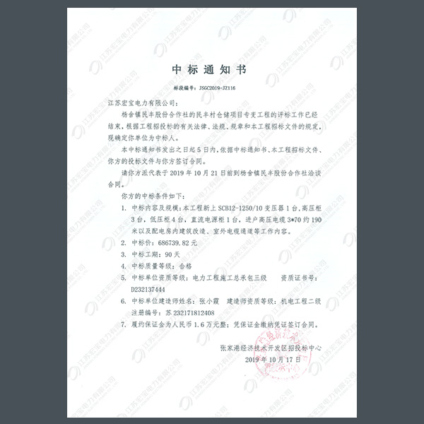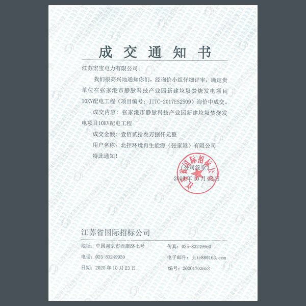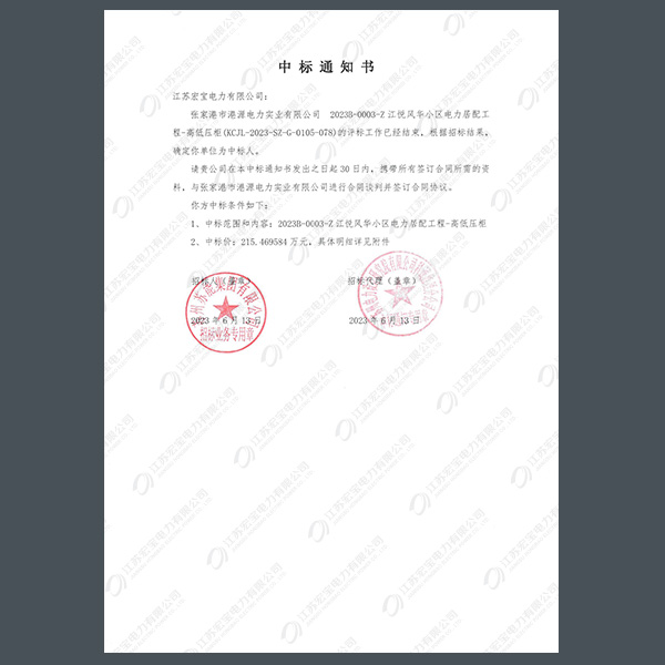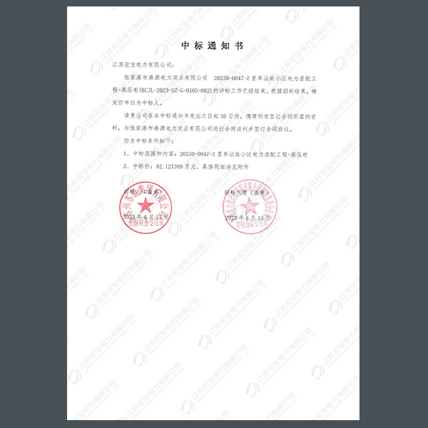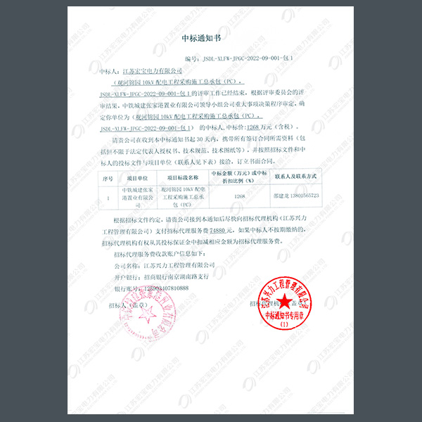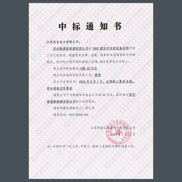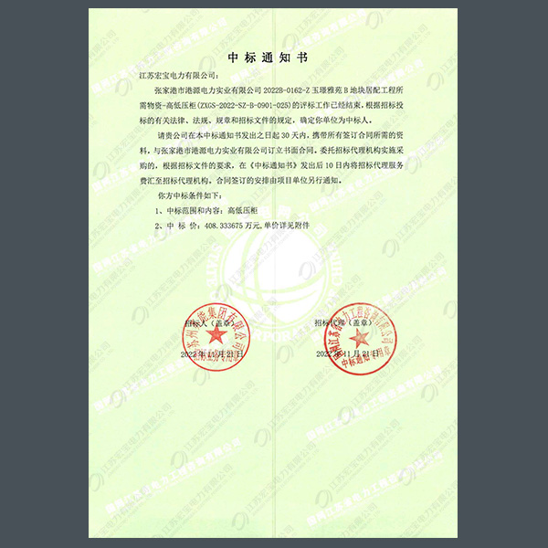 高壓柜中標通知書