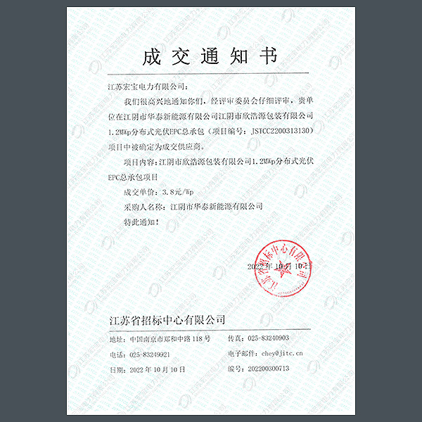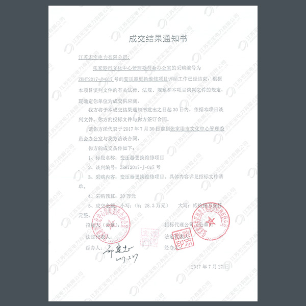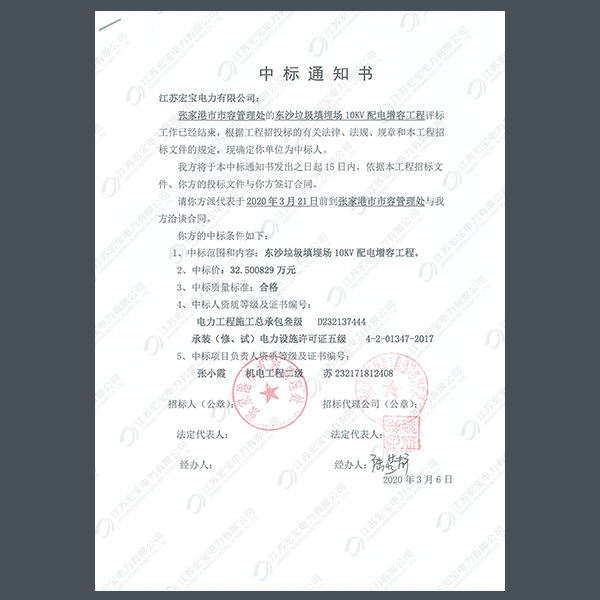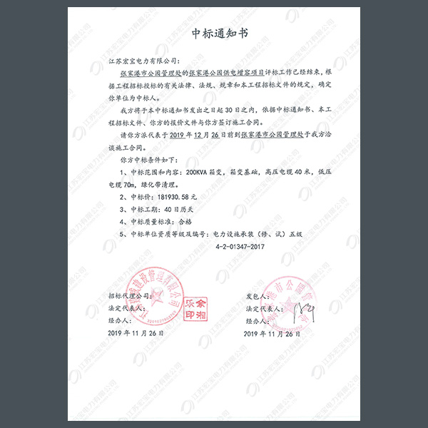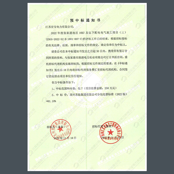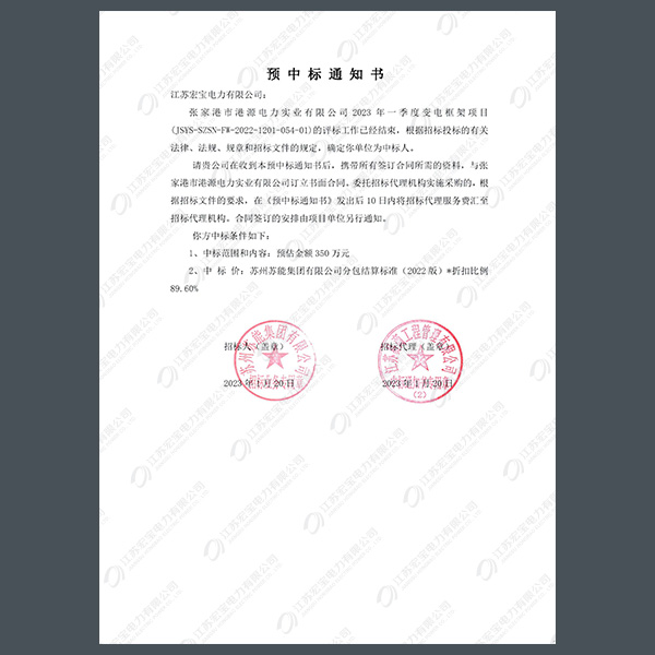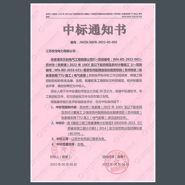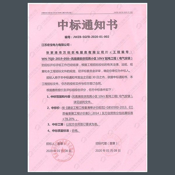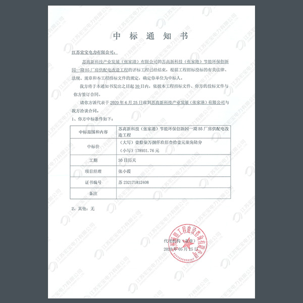 高壓柜中標通知書