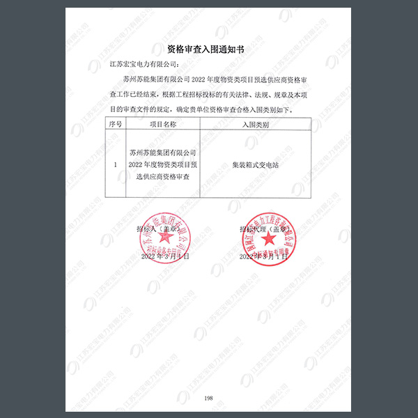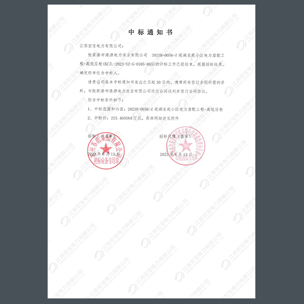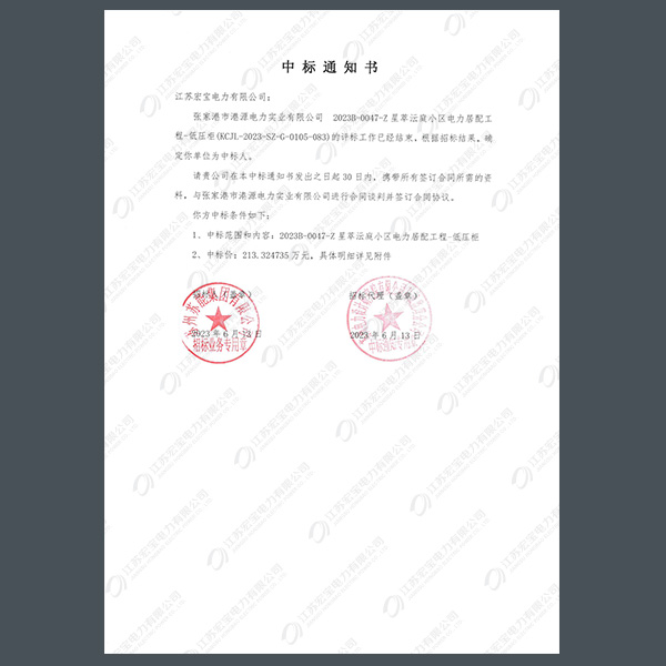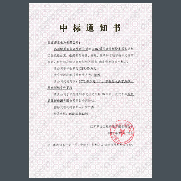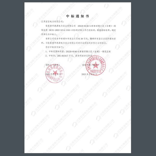低壓柜中標通知書