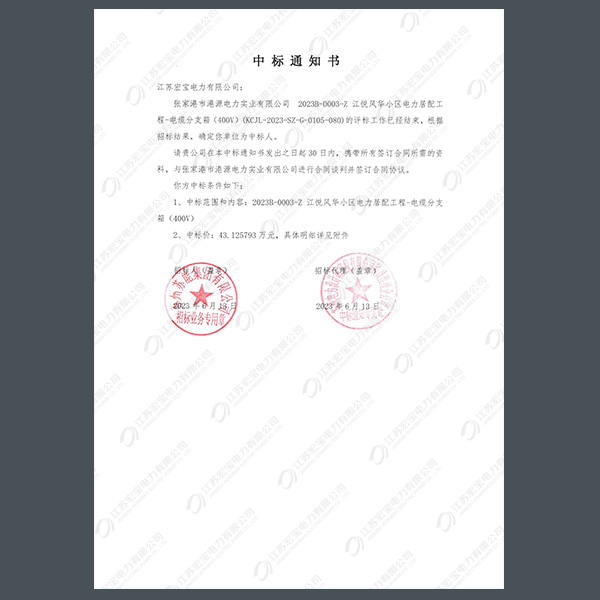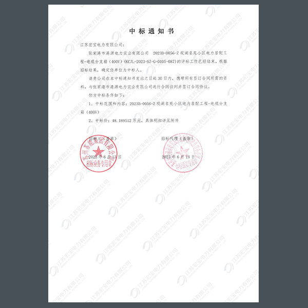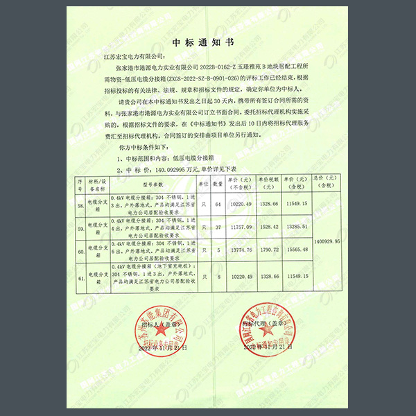 400V電纜分支箱中標通知書